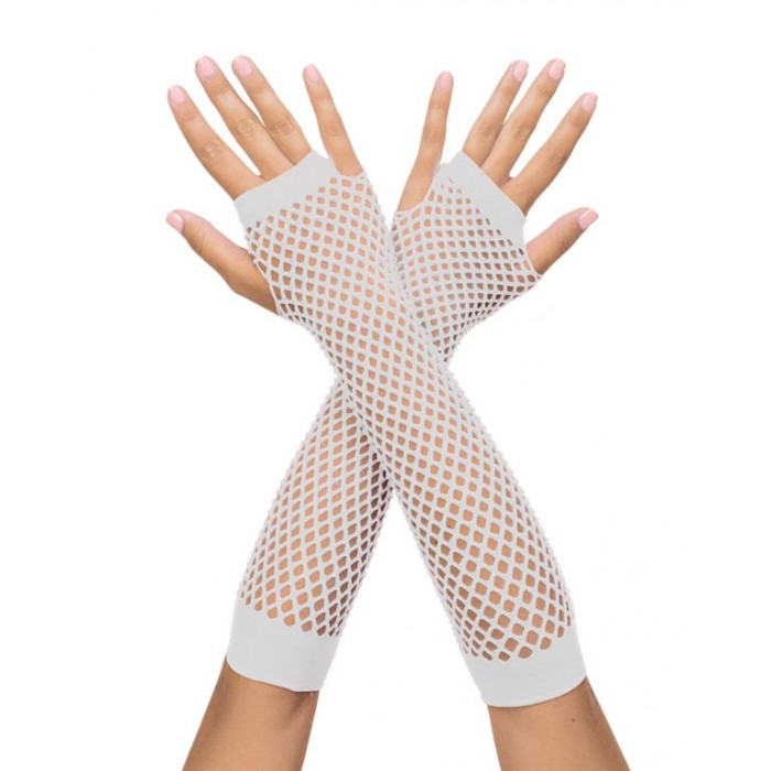 כפפות רשת בצבע לבן >> כפפות רשת לבנות וארוכות (עד למרפק), עם פתח לאגודל. אביזר משלים ומושלם למגוון תחפושות : פאנקיסטית, מדונה, מלאכית, ועוד...