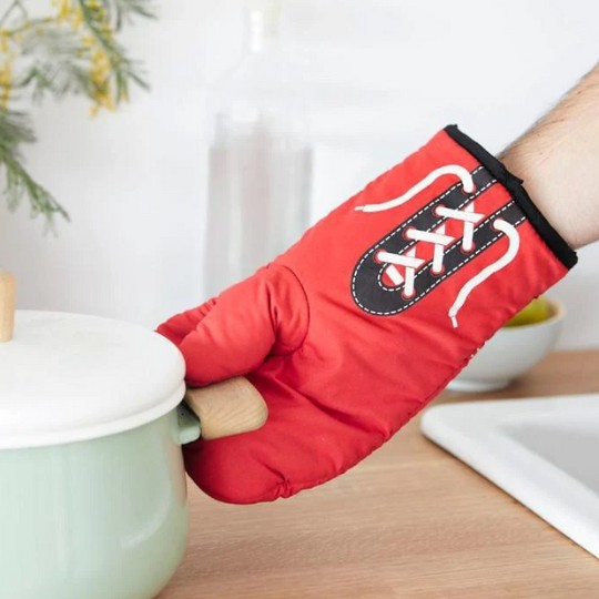 • כפפת מטבח מקורית מעוצבת ככפפת אגרוף.