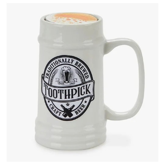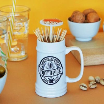 מתקן קיסמי שיניים מקסים בדמות כוס בירה העשויה קרמיקה.