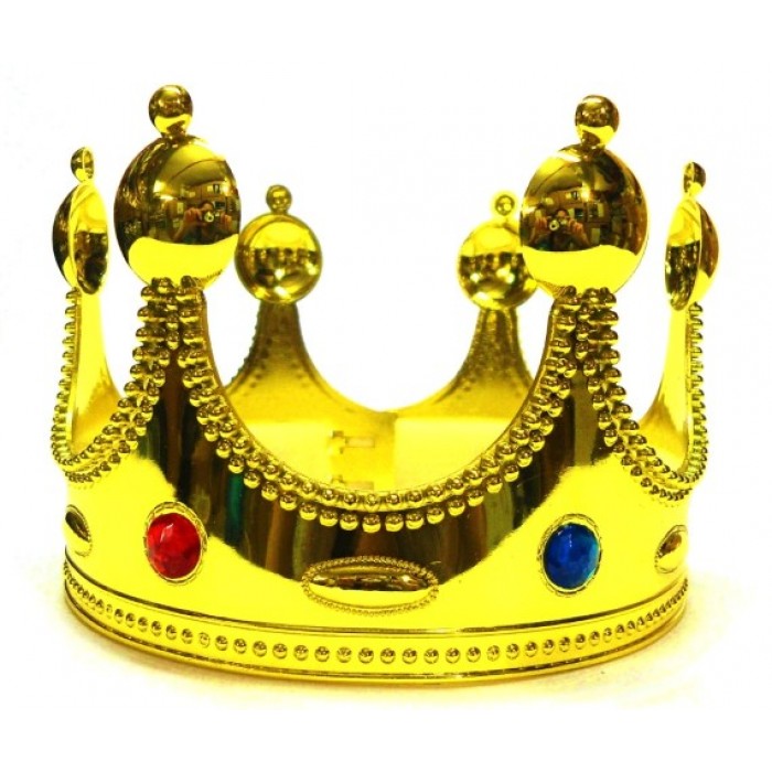 כתר מלך > כתר מרשים, צבוע זהב, קשיח ועמיד, ומשובץ אבני חן ויהלומים! את הכתר ניתן לכוונן, כך שיתאים לכל ראש - מקטן עד גדול! לפורים, ולימי הולדת