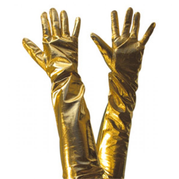 כפפות בצבע זהב ארוכות > כפפות מטאליות מרשימות, במידה אחת המתאימה לכולם, ובאורך של עד המרפק. תשתדרג מיד כל תחפושת של מלך, מיליונרית, ראפר, ועוד...