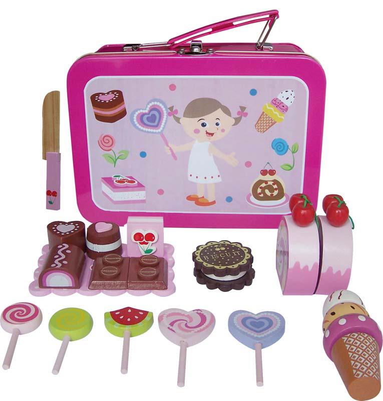 הערכה כוללת :גלידה מעץ,5 סוכריות על מקל,עוגה, עוגיה,6 שוקולדים ,סכין חיתוך ומזוודה