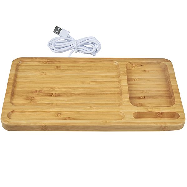 מטען אלחוטי עוצמתי ואיכותי המגיע בתוך מעמד מעוצב מעץ במבוק דקורטיבי ובנוסף במעמד יש מקום לעד 2 ניידים ו2 עטים.