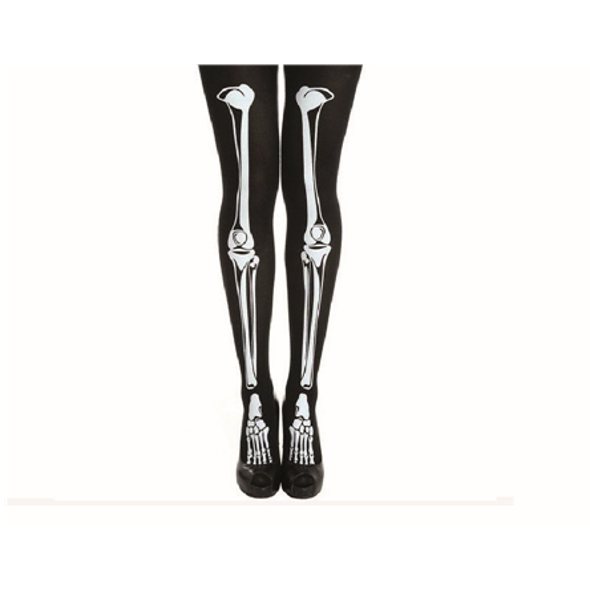 גרביונים שלד >> גרביים ארוכים (עד מעל לברך), מבד ניילון סטרצ'י ונעים, בצבע שחור עם איורי שלד בלבן עליהם. מעולה לתחפושת שלד, מלאך המוות, ועוד...